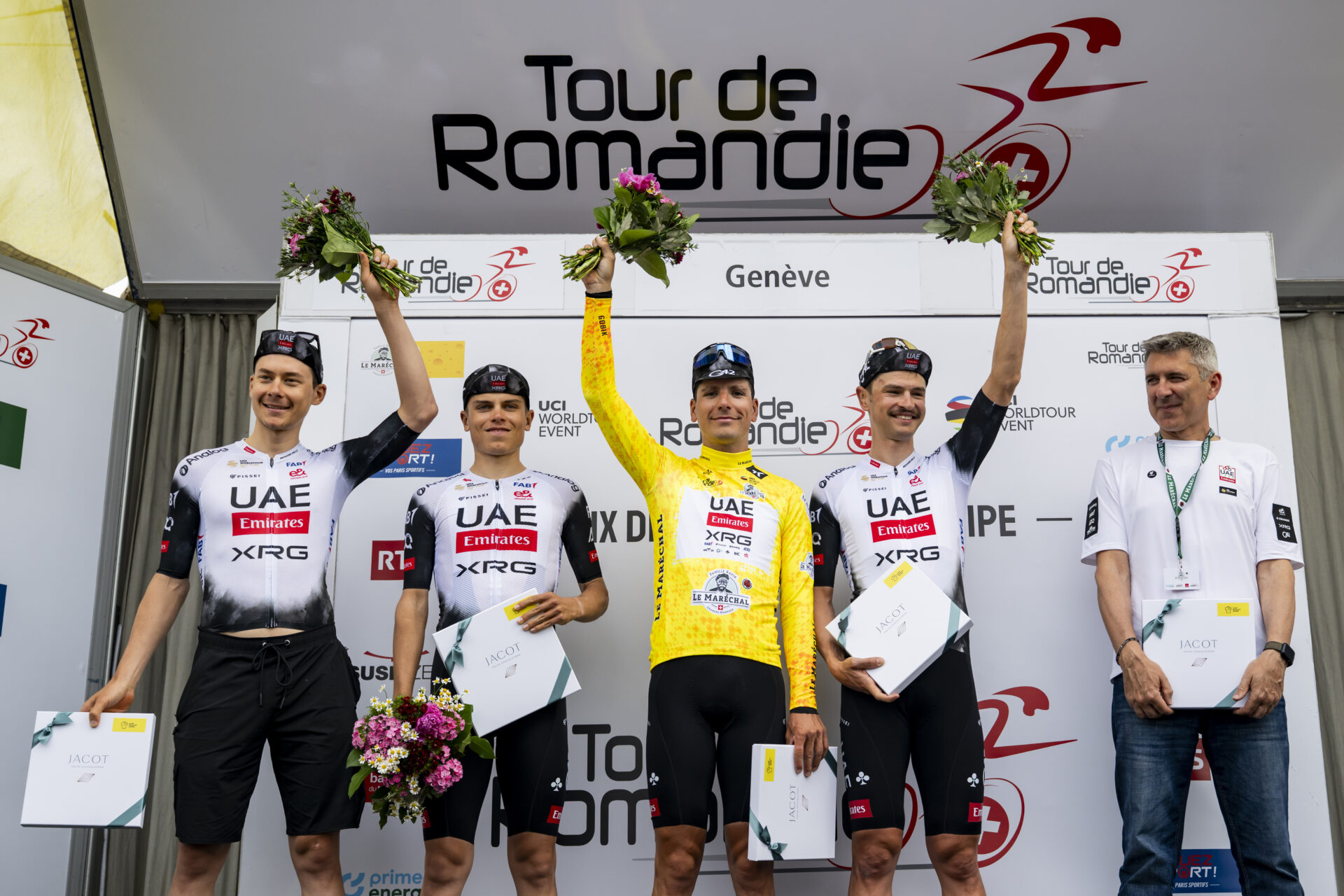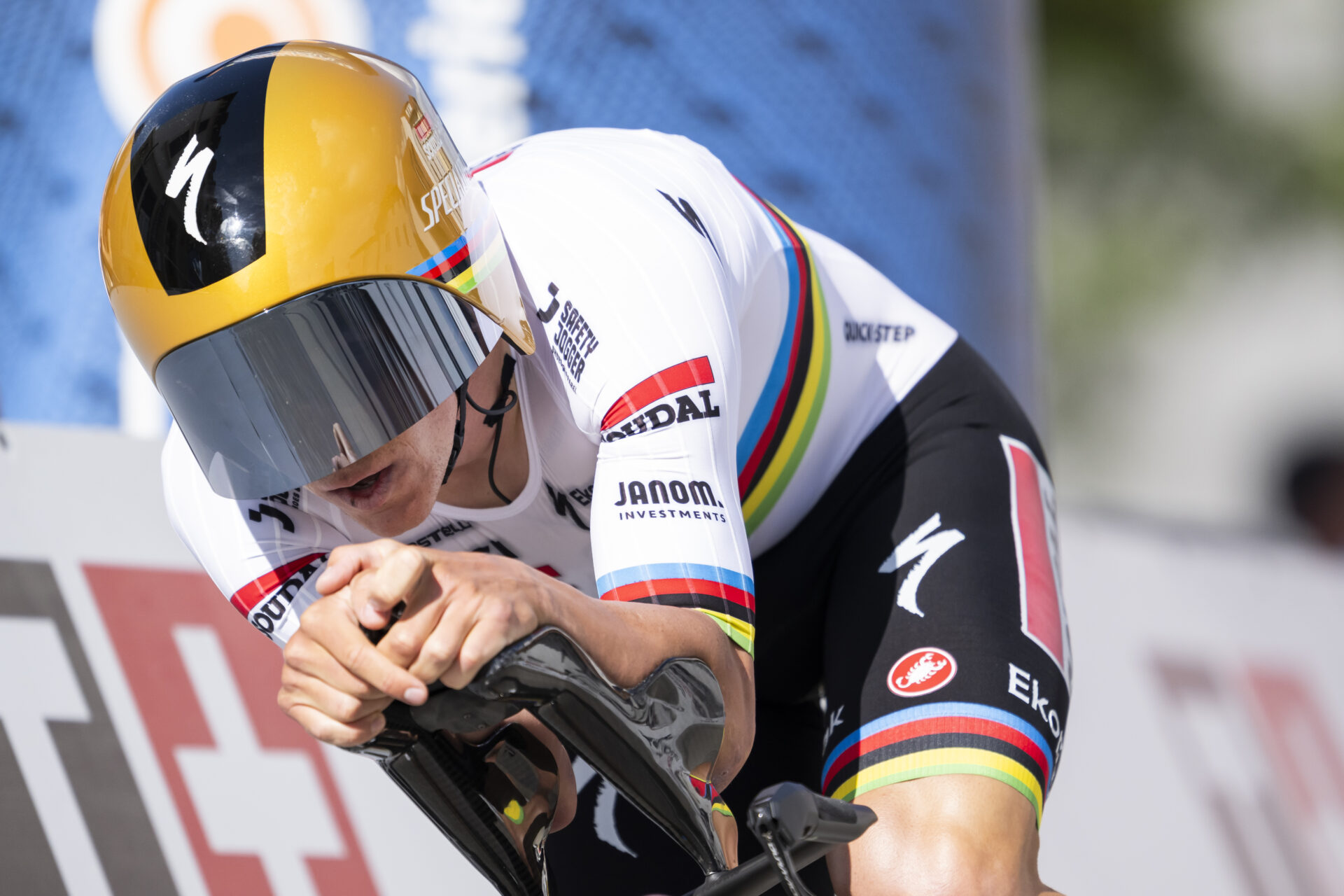 Étape 3 – Juan Ayuso Pesquera, maillot jaune lors du contre-la-montre à Oron